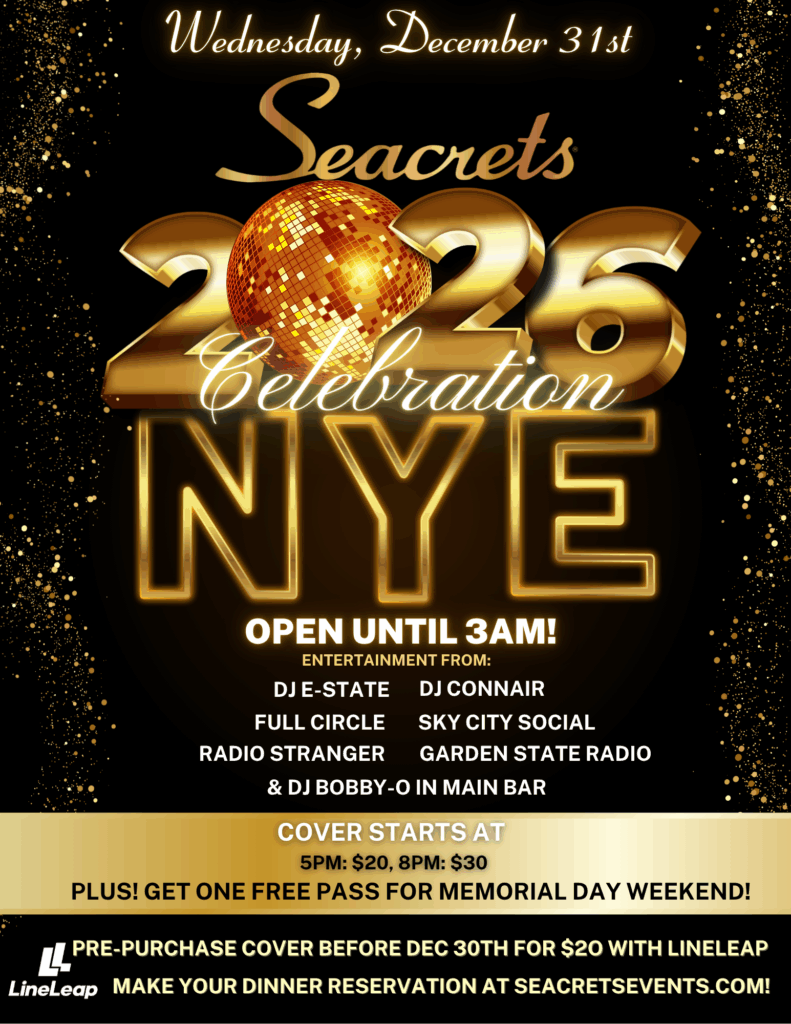 Celebrate the New Year with us at Seacrets, Jamaica USA, on Wednesday December 31st! Dance the night away with live music and DJs spinning your favorite tunes all evening. The party lasts until 3AM, so come ready to ring in the new year in style!